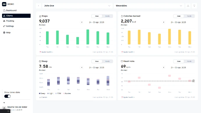 Koppel wearables en verkrijg fysiologische data om slaap, activiteit en stressrespons continu te volgen.