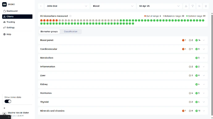 Op basis van de digitale tweeling genereert BRIBRO™ AI-ondersteunde (XAI) health plans. Deze zijn opgebouwd vanuit wetenschappelijke bronnen en afgestemd op de volledige biologische context van de cliënt of atleet.